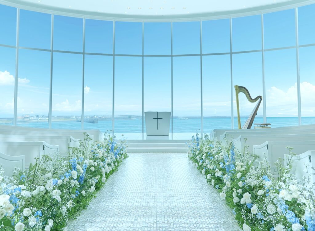 Step into a pure white sanctuary filled with sunlight and serenity. With soft wooden textures and pure white pews, the chapel radiates an atmosphere of gentle warmth. Through the largewindows, the sparkling sea becomes part of your ceremony, while the loving gaze of your guests surrounds you. This beautiful moment becomes the heartfelt beginning of your life together. The all-weather design ensures comfort and peace of mind, no matter the season.